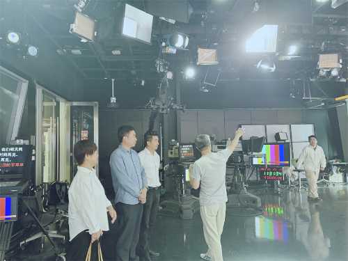 在央视军事频道融媒体部主任刘一鸣的陪同下,调研团队先后参观新闻演播厅、导播间及后期制作机房,通过实地观摩军事新闻直播流程、导播技术演示和节目制作全流程,深入了解军事节目在内容策划、技术保障及场景设计等方面的专业规范。参访人员现场体验主播台播报环节,切身感受军事新闻报道的严谨性与时效性要求。