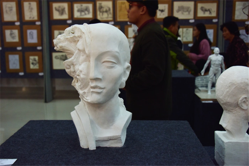 此次展览展出的是雕塑系师生作品,展出作品除雕塑作品外,还有一些绘画作品。参加展览的师生细细品酌每件作品的精妙之处,感受这一场视觉艺术的饕餮盛宴。