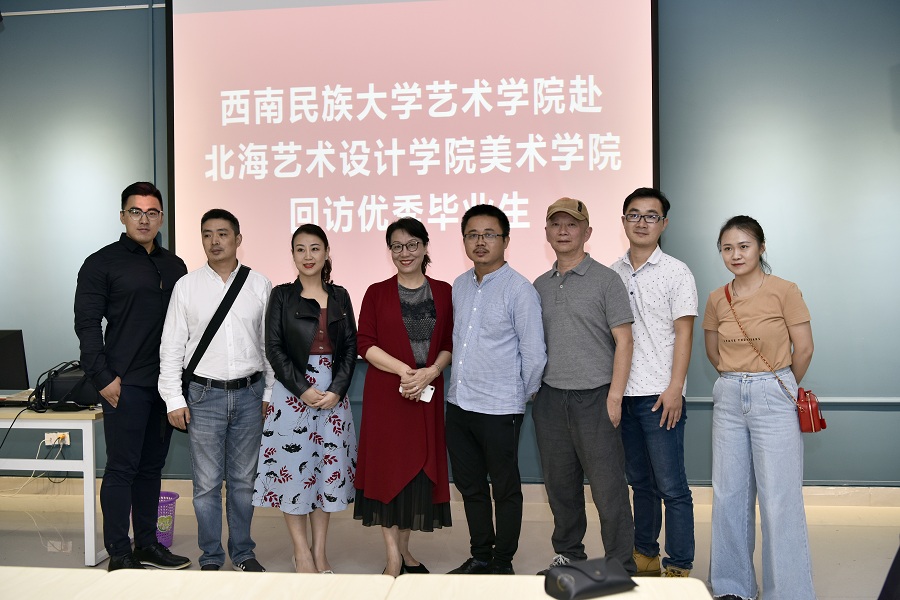 西南民族大学艺术学院领导老师此行还专程回访了在我校担任教师的优秀毕业生代表郭巍、王勃,参观了我校党委书记李高南同志个人摄影展、校园环境以及美术学院各专业教研室的工作室。