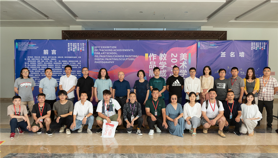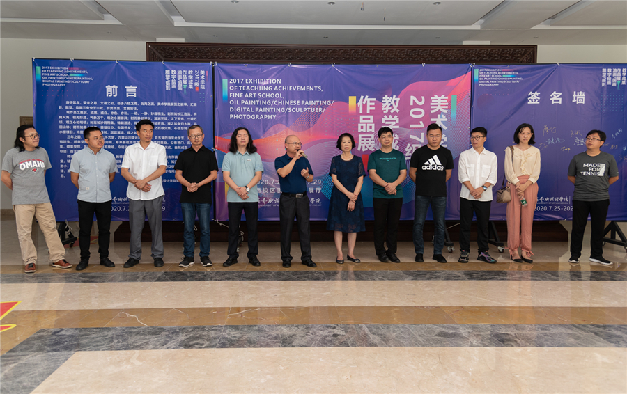 7月25日下午4:30,美术学院2017级教学成果展在西校区图书馆一楼展厅开幕。此次展览共展出绘画作品127件、摄影115件、雕塑62件。我校党委书记李高南,副校长张跃、胡胜、彭仁、王斌、邱杰等校领导以及各二级学院相关领导应邀出席开幕仪式。