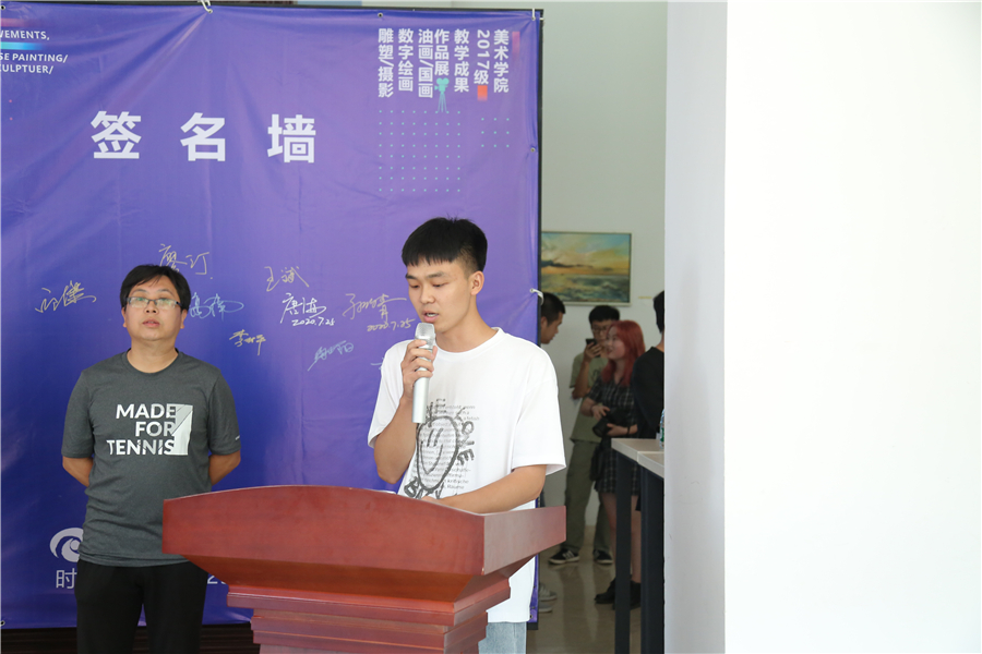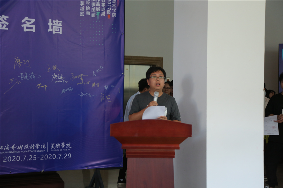 学生代表黄珍、蒋理、孙浩先后发言,他们回顾了初来北艺时的青涩、稚嫩,经历三年学习生活的紧张、彷徨、困惑,以及收获成功后的欣喜。通过本次作品展,大家在创作实践能力方面有了进一步提高,感谢学校的大力支持和老师们的悉心指导。