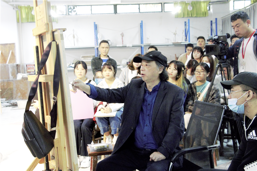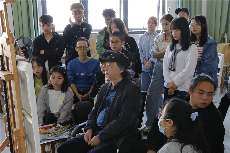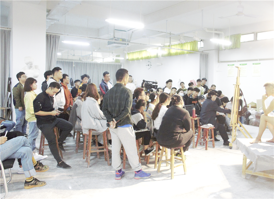 2020年10月22日,曲湘建教授莅临美术学院指导教学,在图书馆负一楼雕塑教室为美术学院同学上了一堂精彩的写生示范课。