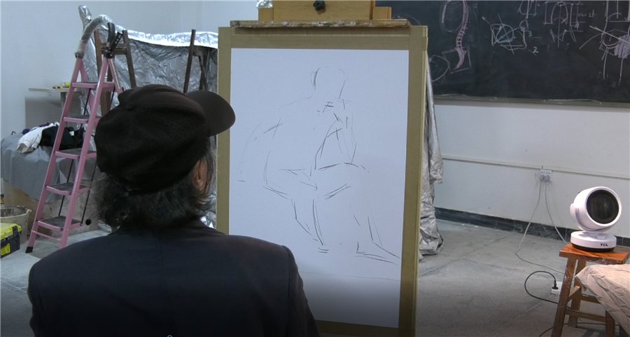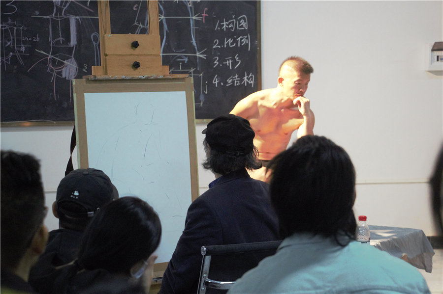 湖南师范大学美术学院曲湘建教授莅临我校美术学院进行人体素描写生示范教学