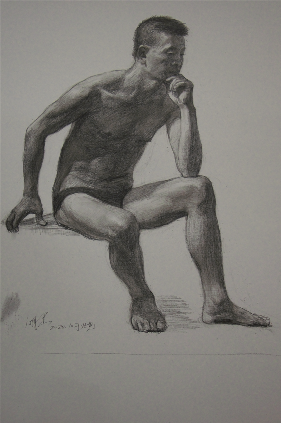 作品完成后,曲教授结合对自己的作品对人体素描的创作细节进行讲解。大家纷纷表示,现场观摩大师作画,亲身感受大师的艺术修养和人格魅力,对自己作画技法方面深受启发, 范画结束后,曲教授与大家亲切交流并拍照留念,此次范画活动圆满结束。
