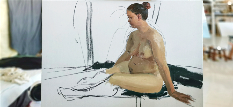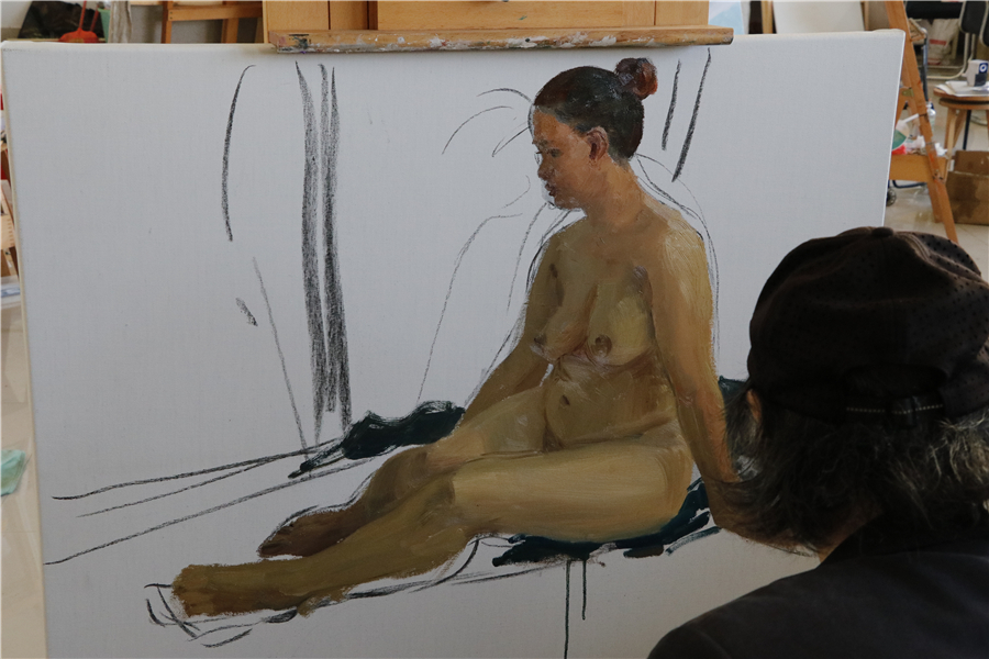 随后几天时间里,曲教授深入课堂,指导18、19级学生色彩人体写生及色彩人物写生,并且又进行了两次色彩人物示范,为更多同学在学习绘画的道路上指明了方向!
