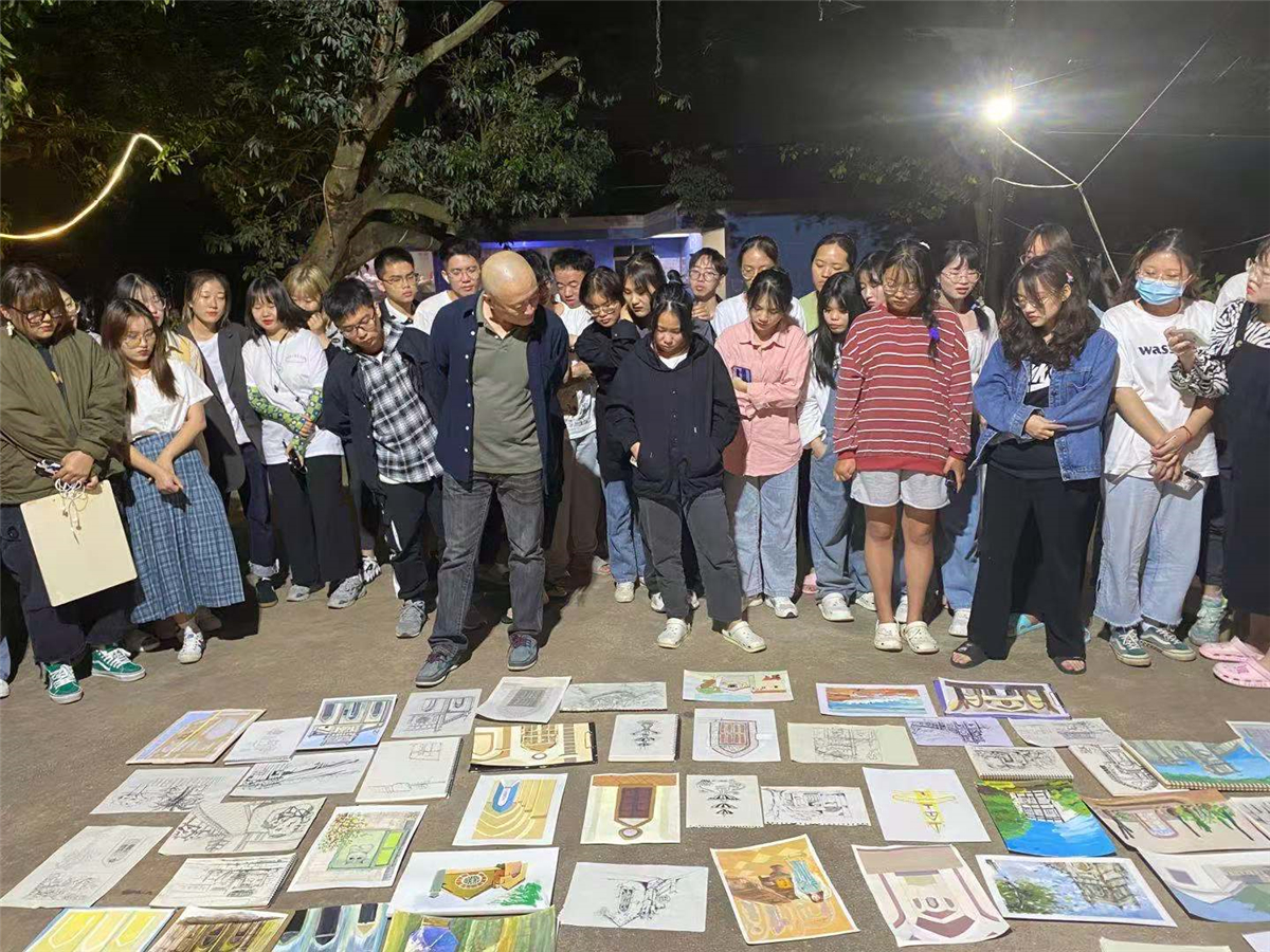 师生们每到一地,根据现场环境认真进行写生创作,相互观摩画作,交流作画心得,教授和老师对学生作品进行指导点评,帮助学生及时改进写生技巧和创作思路。