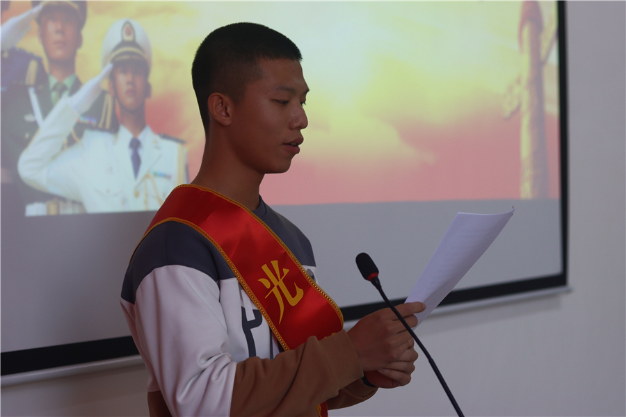党委书记李高南发表讲话。李书记在讲话中对退伍同学予以肯定,希望同学们在今后的学习、工作、生活中,珍惜军人荣誉,继续保持和发扬人民军队的优良传统,退伍不褪色,争做新时代的好青年。