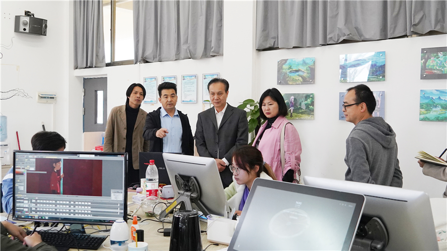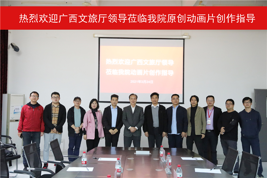 为深入了解我区动漫产业基础及发展情况,加快推动广西动漫产业发展。3月24日下午,广西文联原副主席黄云龙、自治区文旅厅资源开发处四级调研员邹高莹、广西广播电视台公共频道主管、广西动漫协会秘书长潘波、北海市旅游文体局资源开发科科长镇威、北海市旅游文体局资源开发科干部宫笠铭等组成的调研组莅临我校动画学院,就动画专业建设及动漫创作情况开展调研。