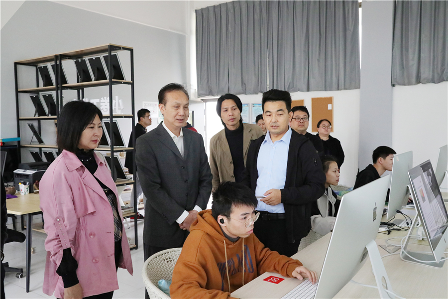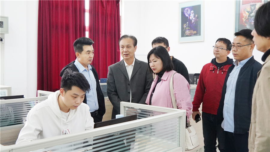 学校副校长陶立阳,动画学院党总支书记、副院长杜博,副院长孙永辉,动画系主任李宗毅,实训中心主任于海洋及各教研室主任陪同调研组实地考察了学院实训室。