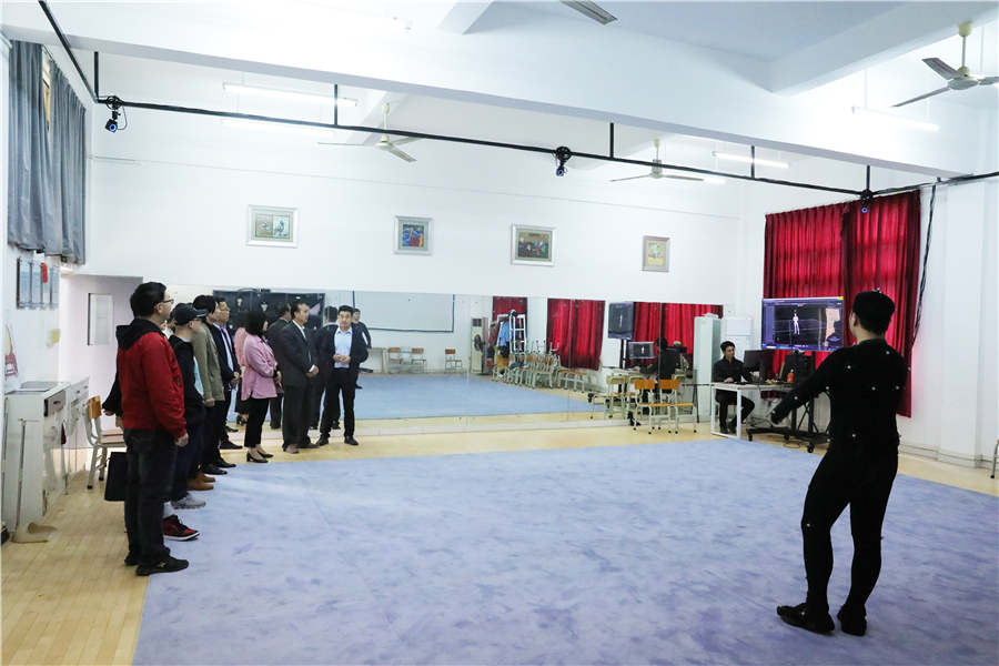 孙永辉副院长介绍了学院实训基地建设、动画专业发展、校企合作、师资队伍、人才培养及动画项目成果等情况。调研组深入考察了学院虚拟演播厅、动态捕捉系统、二维工作室和小卷工作室,对学院实训基地建设、动画专业人才培养模式以及项目成果给予了充分肯定。