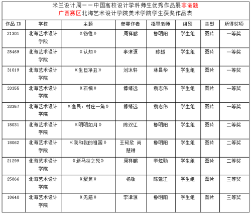 广西赛区北海艺术设计学院美术学院学生获奖作品表