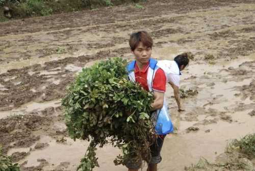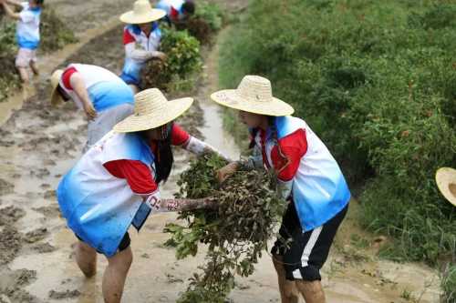 志愿者们分为两队,一队开展了助农采摘打包荔枝,另一队走到田地采摘花生,从源头了解花生的生长,亲身体会当地农民劳作的艰辛。