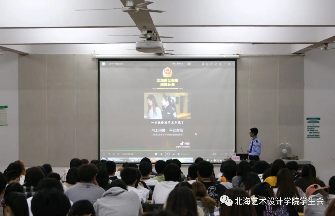 为了提高广大学生的网络防骗意识,增强对电信网络诈骗犯罪的识别和应对能力,共同营造卫生城市的良好氛围,2020年11月24日晚上19:30由共青团北海市委员会、北海市公安局网络安全保卫支队共同举办的“远离校园网贷,谨防网络诈骗”暨“携手同心创卫,共享美丽家园”青少年宣传活动在我校西校区伦理楼107正式开讲。