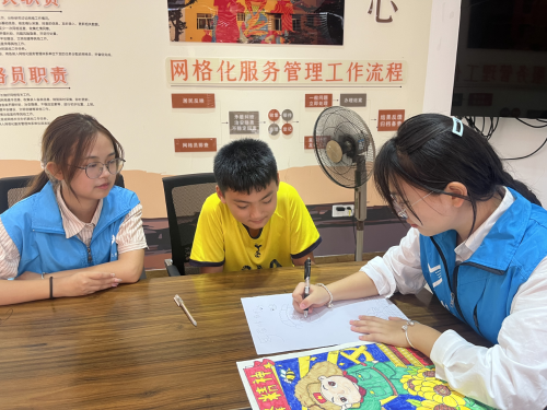 上课啦!孩子们如同初升的朝阳,朝气蓬勃。志愿者们也充当好老师的角色,为课上的孩子们认 真讲课,仿佛浇灌花朵的园丁,殷切地将画画手工知识教给小朋友们,给小朋友带去了无穷的乐趣。随着课程的不断进展,志愿者们细心地辅导着小朋友们,认真解答他们的问题,一次次落下的画笔是小朋友们天马行空的想象,是他们对于这个世界的探索,也是他们初识人生的一步。