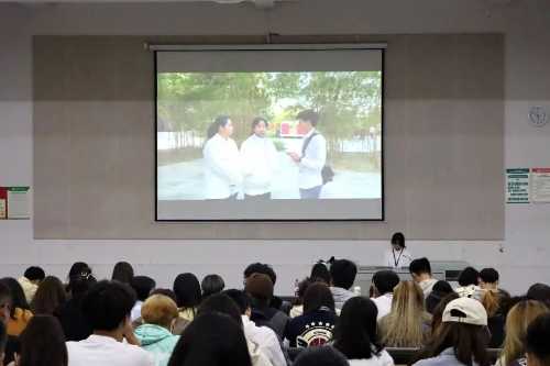 活动第五项:19、20级学长学姐上台进行分享学习经验。分别为:人文教育学院周可柔同学,动画传媒学院马妍同学。